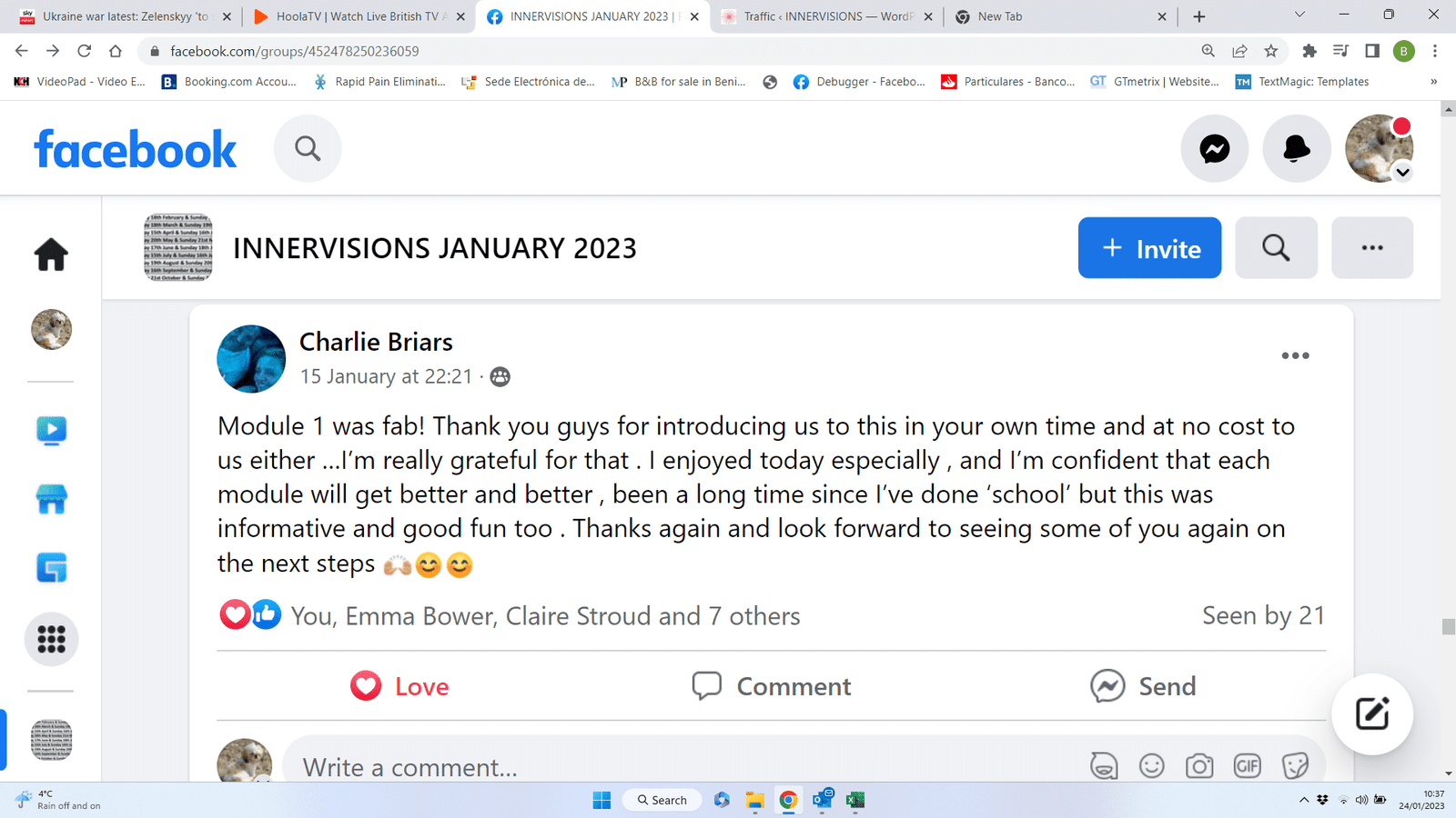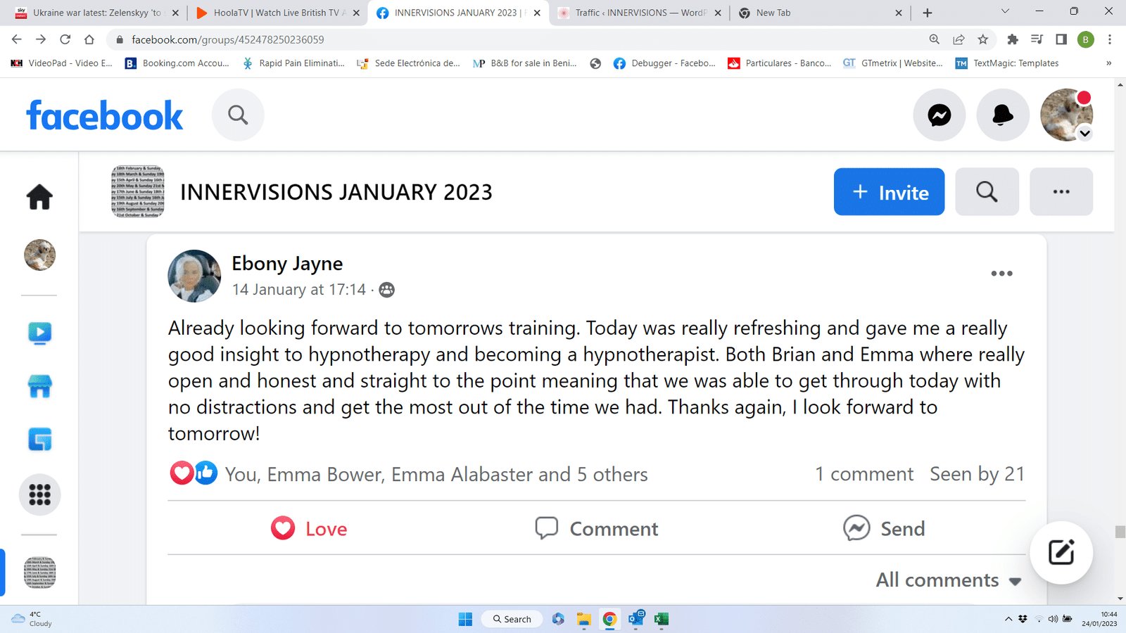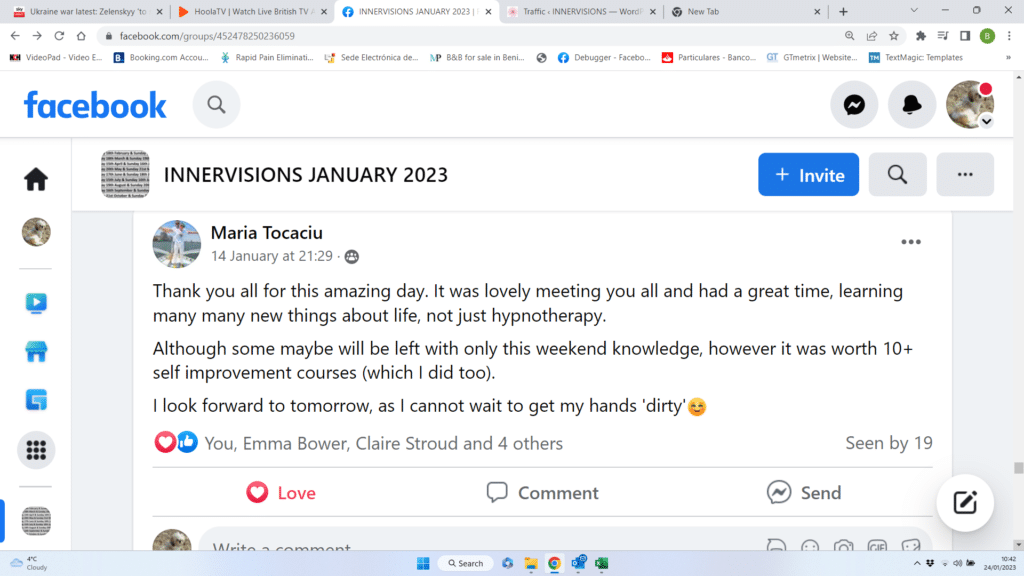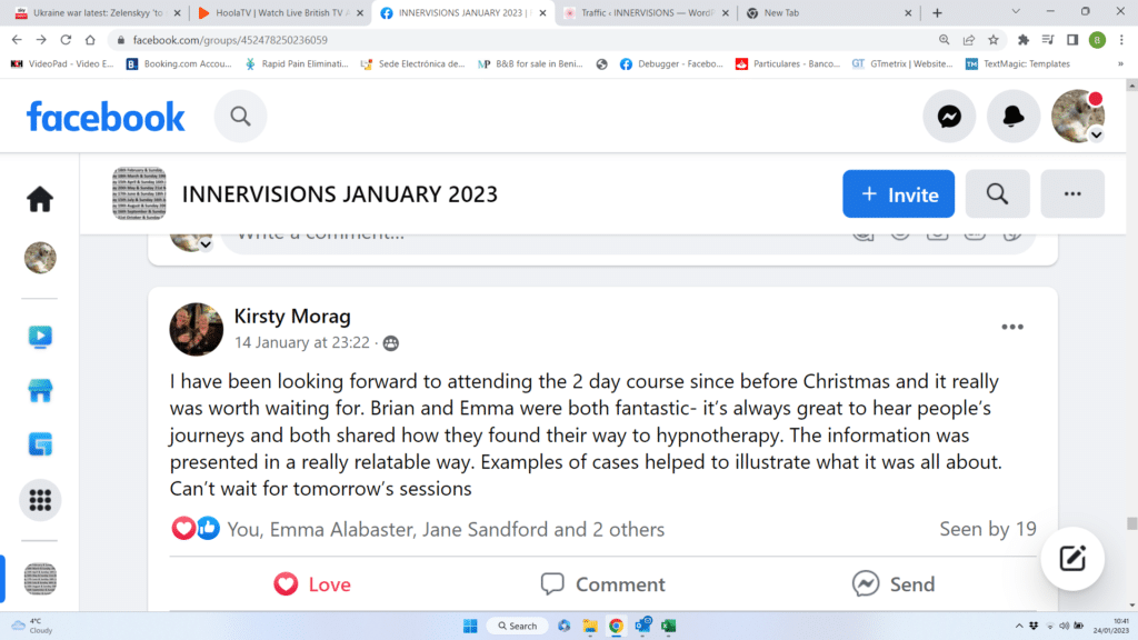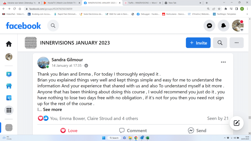 We recently started a course and below is a selection of reviews that the students kindly posted on their Facebook support group after completing module one absolutely free and unconditional.
